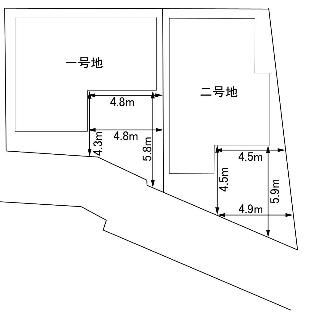 接道状況:1号地 西側約3.34〜3.6m私道、北側約3.49m私道